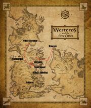 Equally yous can see on the first picture on the left, this is my tax route (I depart in White Harbour and finish in Braavos). I marker the cities where I own land in black and the route in red. You might notice that the route doesn't lead to neither Ashford not King's Landing, meaning money will just accumulate there without being picked up. I decided to change that.